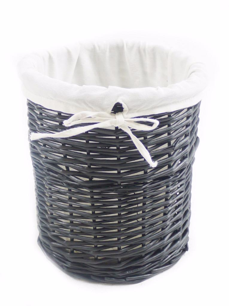Black round large wicker Laundry basket with lid round Etsy